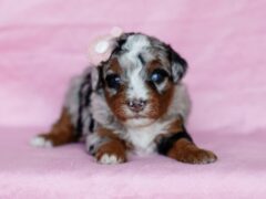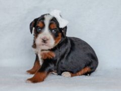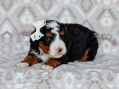 is a Tri-Colored male Mini Bernedoodle,
